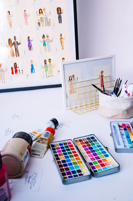 - Een professionele illustrator (Melianna) en assistent op locatie